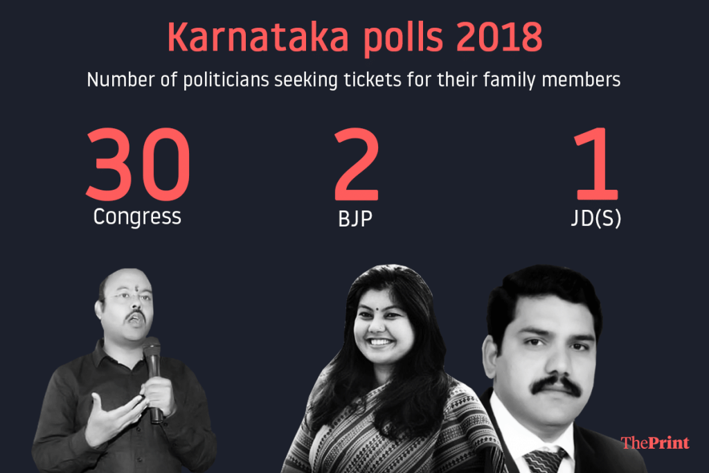 Bengaluru: It’s that time of the election process in Karnataka where every politician is scrambling to secure tickets for his or her loved ones. The state has witnessed a phenomenal rise in demand for tickets for family members, with the Congress leading the way — 30 sitting MLAs have sought tickets for their wives, sons or daughters.
