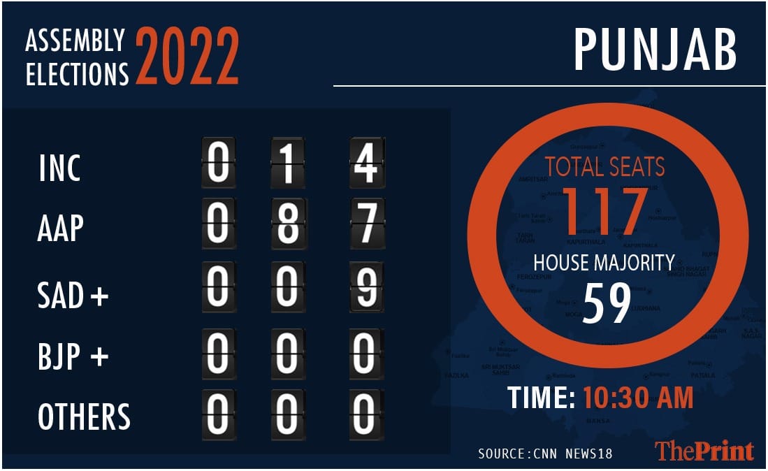09:55 am: AAP leads in 84 seats in Punjab, EC shows.