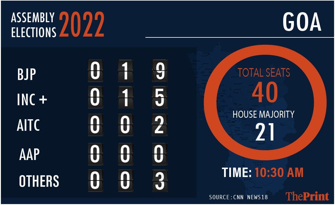 The fight in Goa was predicted to be a tight finish, but the BJP reached the halfway mark in the 40-member assembly. With the regional MGP, the BJP will form the government with over 25 seats. The Congress is eight down from 2017 and has managed 12 seats. The AAP and Trinamool Congress have got three and two seats respectively.