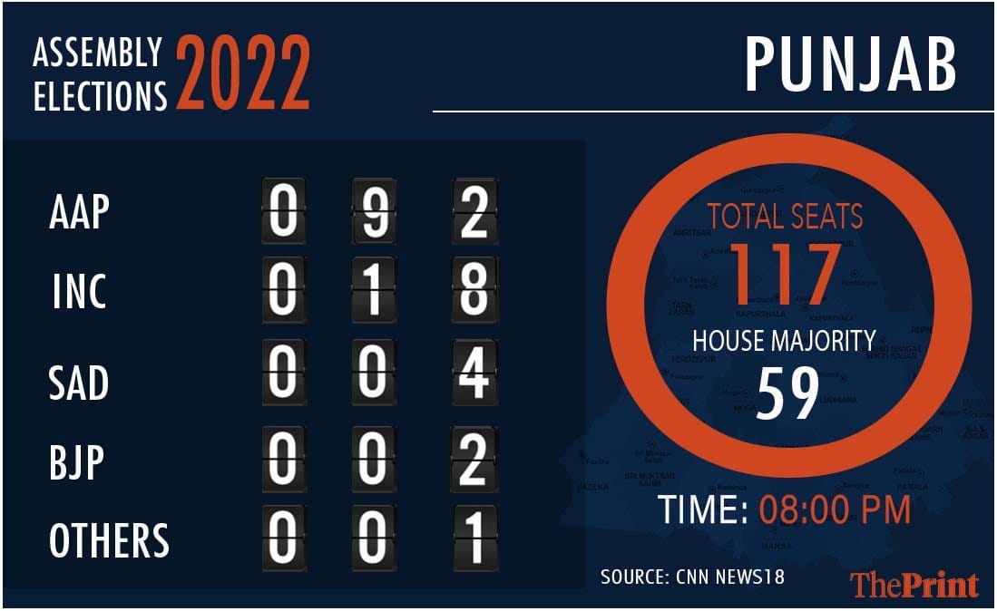 Punjab overwhelmingly voted for the Aam Aadmi Party, throwing out the ruling Congress whose public infighting alienated voters. From 77 seats last time, Congress was struggling to get 20. Congress stalwarts Navjot Singh Sidhu and outgoing chief minister Charanjit Singh Channi, Captain Amarinder Singh and the Akali Dal’s Sukhbir Badal were the heavyweights to fall.