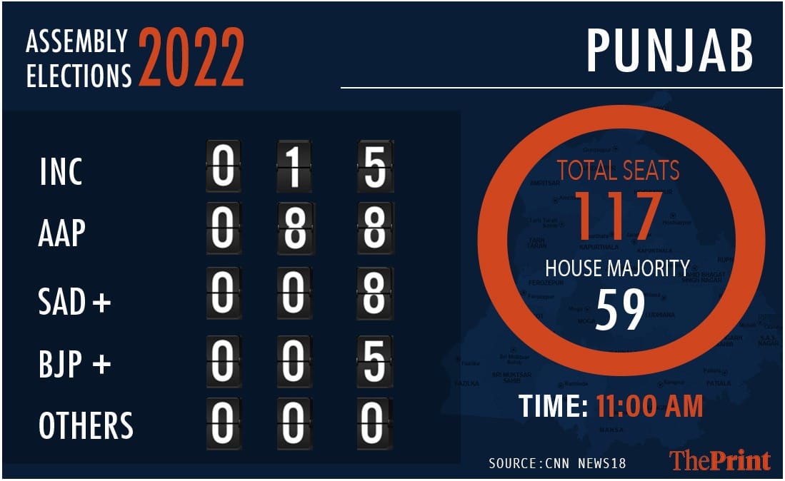 09:55 am: AAP leads in 84 seats in Punjab, EC shows.