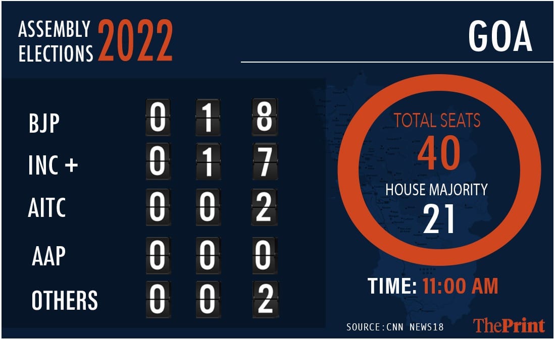 The fight in Goa was predicted to be a tight finish, but the BJP reached the halfway mark in the 40-member assembly. With the regional MGP, the BJP will form the government with over 25 seats. The Congress is eight down from 2017 and has managed 12 seats. The AAP and Trinamool Congress have got three and two seats respectively.