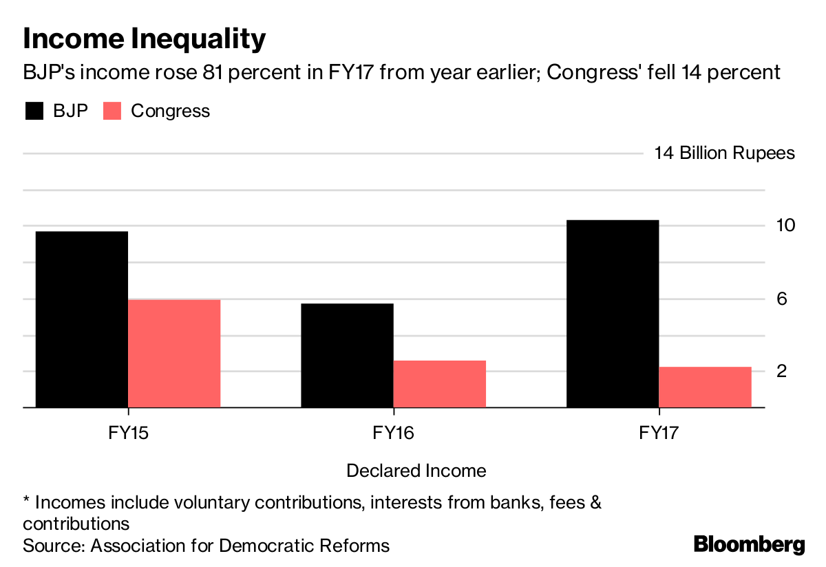 Without campaign funds, Congress will face considerable hardship going into 2019, said Jagdeep Chhokar, founder and trustee of the Association for Democratic Reforms. “A party that does not have money will be at a disadvantage in Indian elections.”