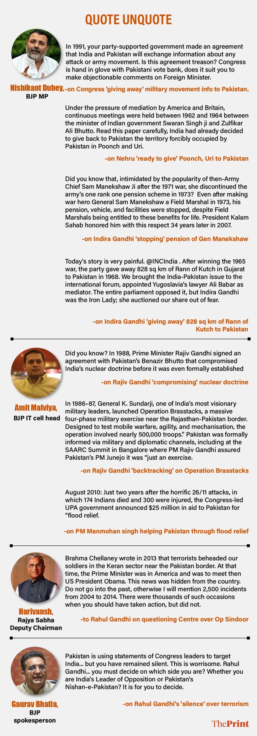 Dubey, meanwhile, has gone on to make various claims. He has alleged that the Congress under Indira gave away 828 sq km of Gujarat’s Rann of Kutch to Pakistan after winning the 1965 war.