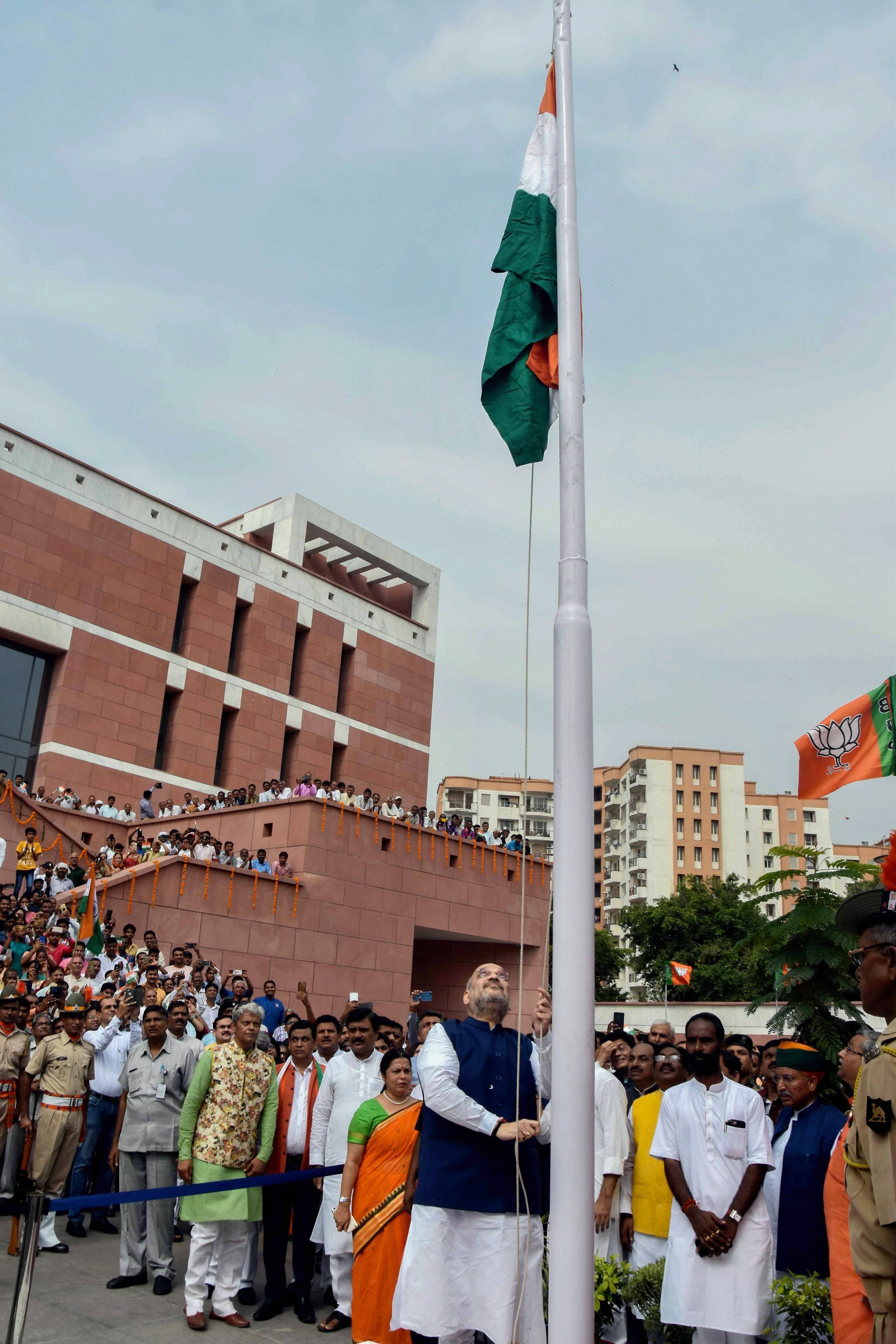 Wednesday’s video shows Shah pulling the wrong rope of the flag because of which the Tricolour first falls to the ground before it is finally unfurled.