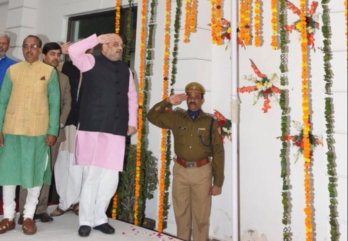 New Delhi: A video of BJP chief Amit Shah struggling to unfurl the national flag at the party headquarters in Delhi went viral on social media Wednesday. However, what turned out to be more embarrassing for the ruling party and the government was that the entire episode was covered live by Doordarshan News, a first for the public broadcaster.