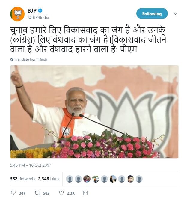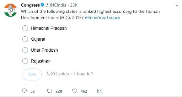 Both the BJP and Congress are working actively on social media to give the impression of greater accountability and more personal engagement. Twitter polls have become popular as a method to gauge audience interaction on social media, and interestingly, rather than countering the ‘vansvad’ (dynasty) label that BJP bracketed the Congress with, the latter has attempted to adopt and rework it to its advantage.