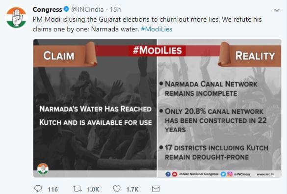 While the Congress uses significantly fewer #tags than the BJP, the primary aim of its social media campaign has been to expose the falsity and failures of the ‘Gujarat model’ of development. The Congress aims to consolidate its vote bank in Gujarat by targeting communities it feels have been left out of the BJP’s prosperity narrative – OBC communities, unemployed youth, women, farmers etc.