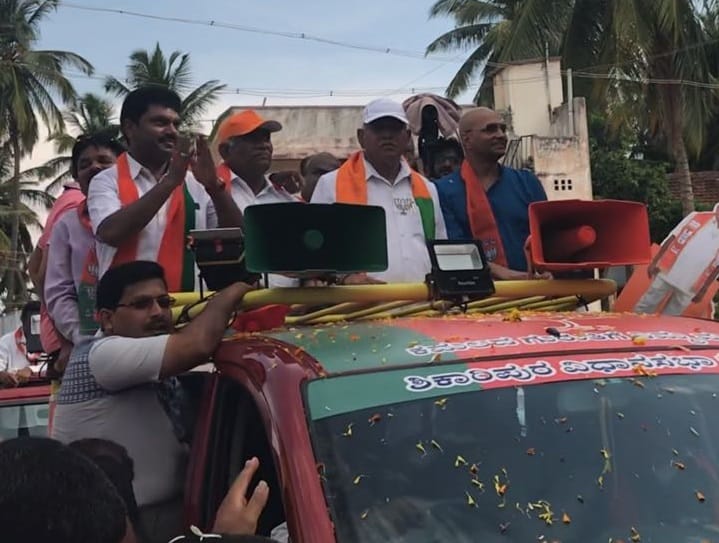 As BSY left for Badami, his son and incumbent MLA B.Y. Raghavendra held the fort in Shikaripura, holding a road show for his father.