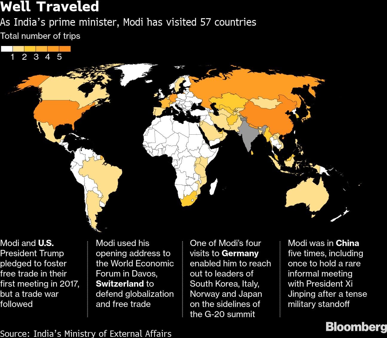 Modi has tried to use his trips to bolster India’s global image as an investment destination and a rising global power. He’s addressed the World Economic Forum in Davos and the Shangri-La security dialogue in Singapore.