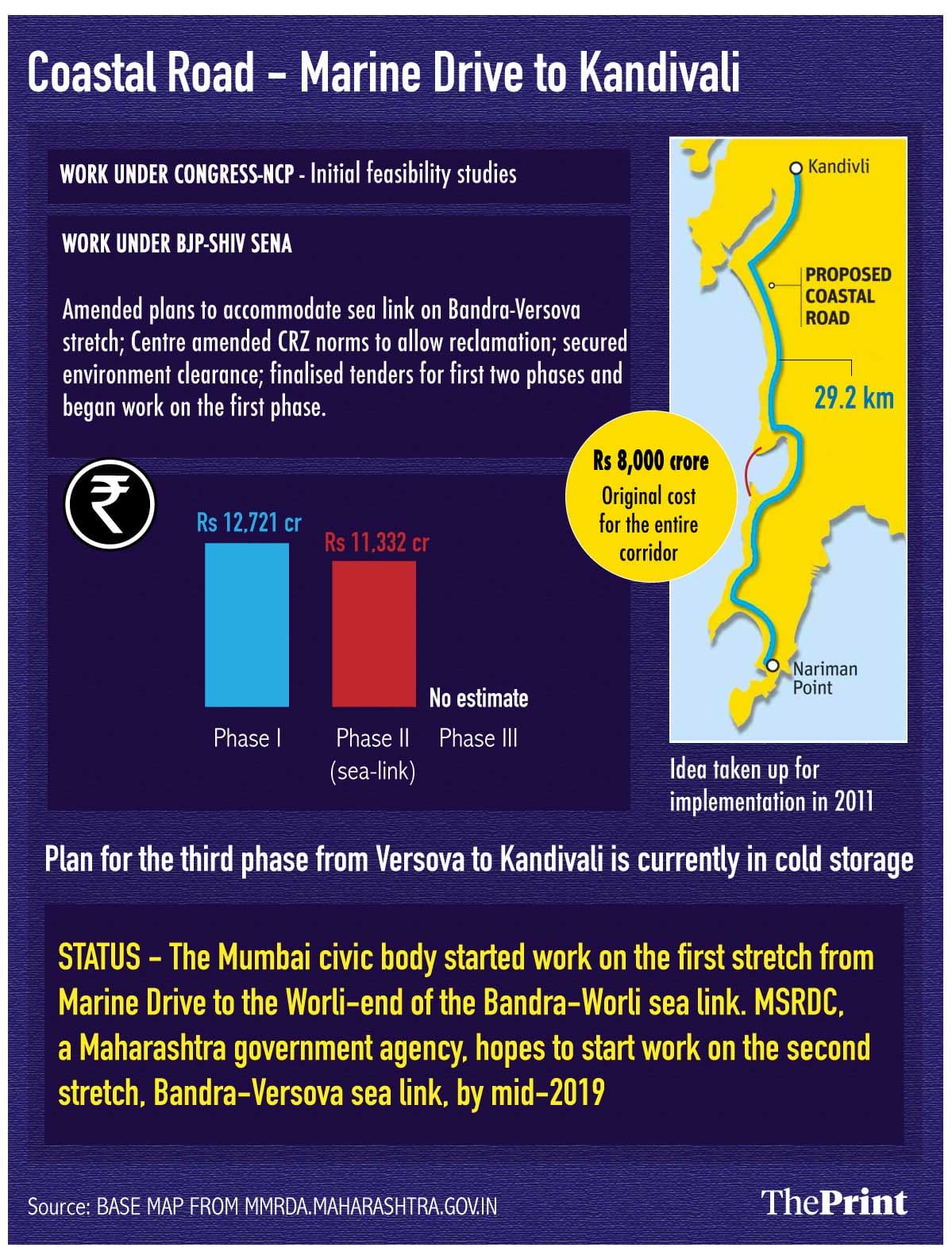 The previous government had proposed the coastal road project as an alternative to an expensive network of sea links to connect Mumbai’s south to its western suburbs in 2011.