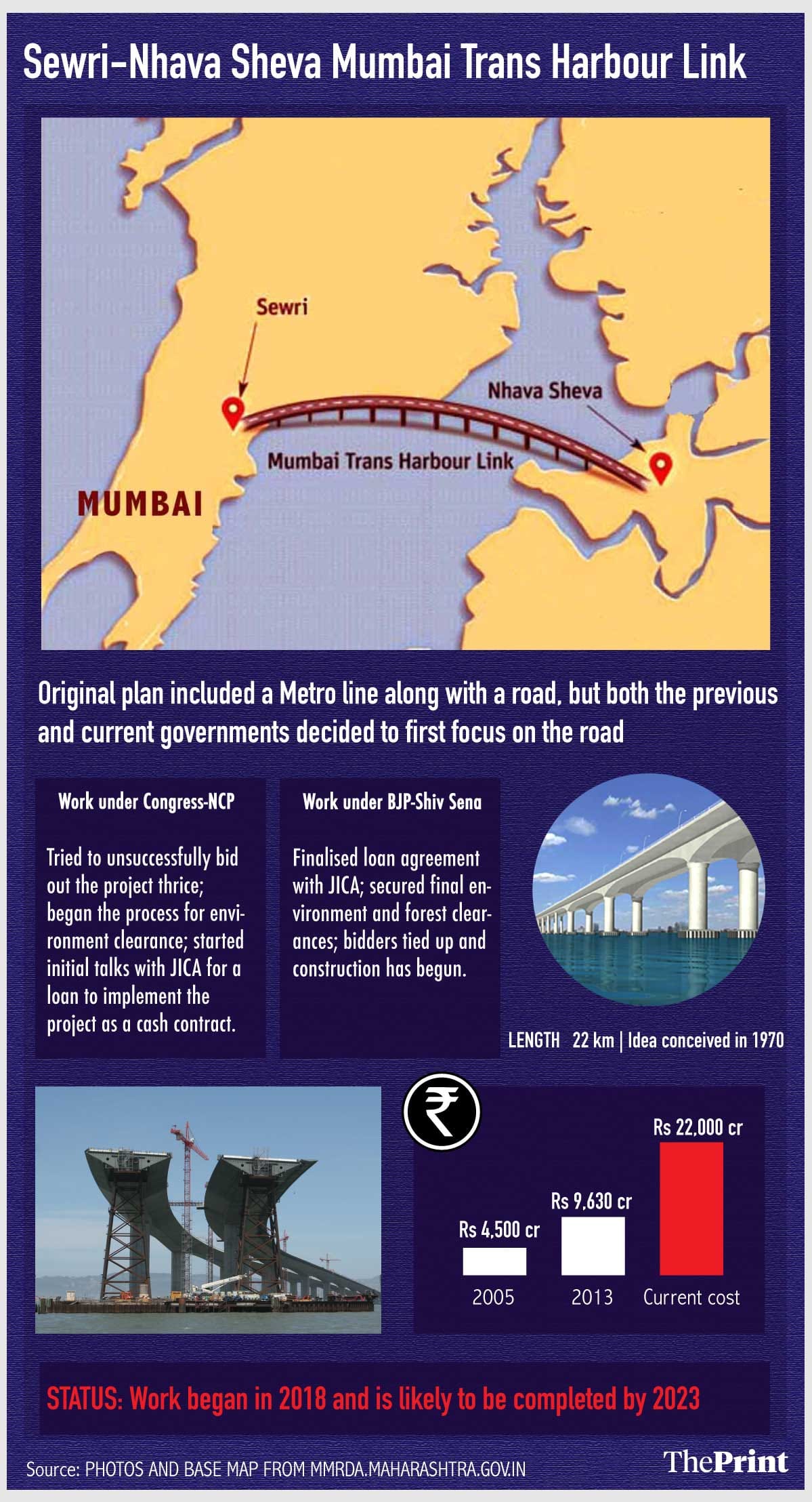 The plan to have a trans-harbour link connecting Mumbai’s island with the mainland was first conceived in 1970 and approved by the state government in 1996.