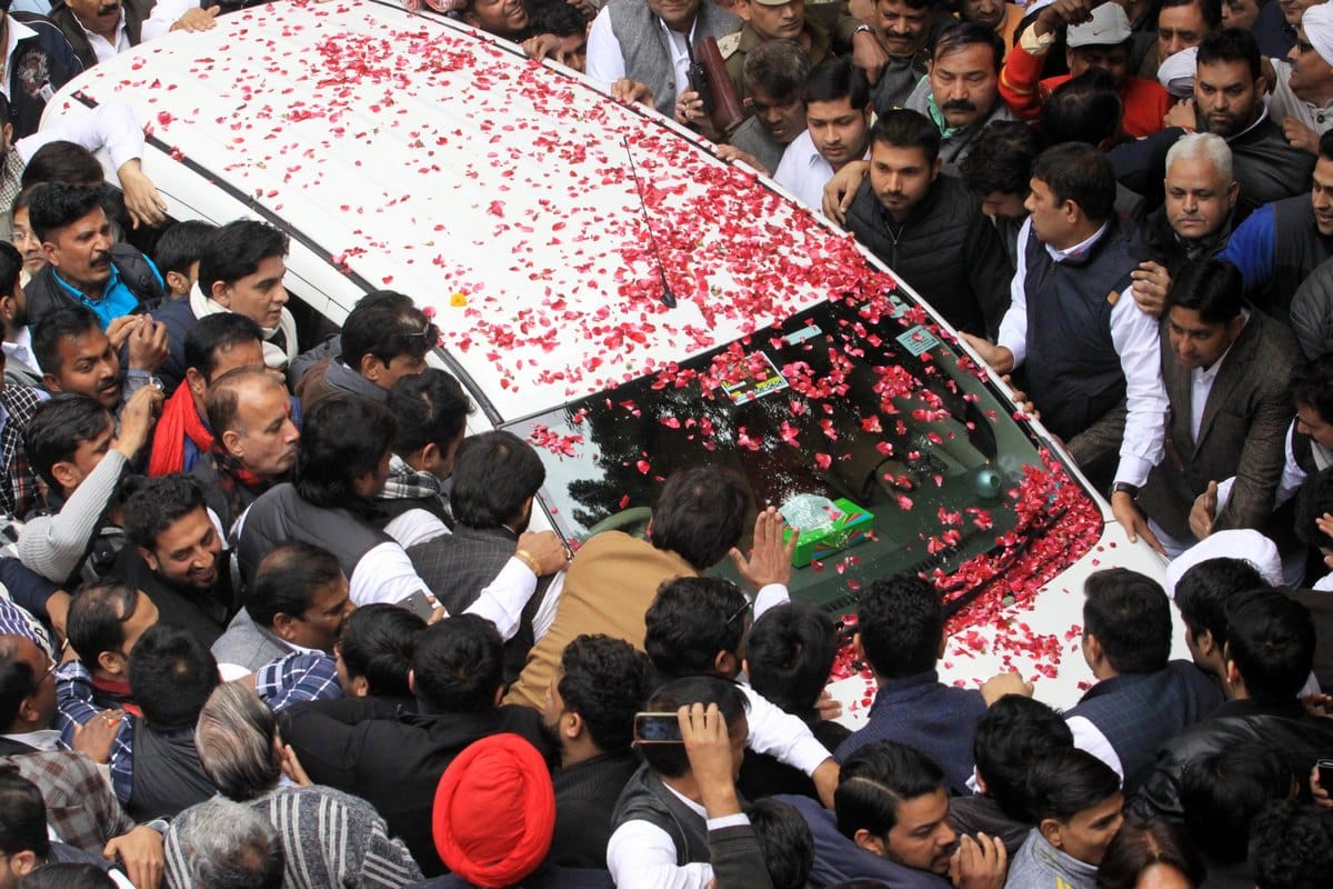 The celebrations at the party headquarters was marred by the presence of Jagdish Tytler, an accused in the 1984 anti-Sikh riots.