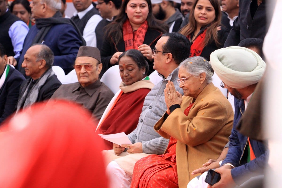 Senior Congress leaders Karan Singh, Janardan Dwivedi, Meira Kumar, PC Chacko, Sandip Dikshit and Ajay Maken were among those present as Dikshit took charge.-PTI