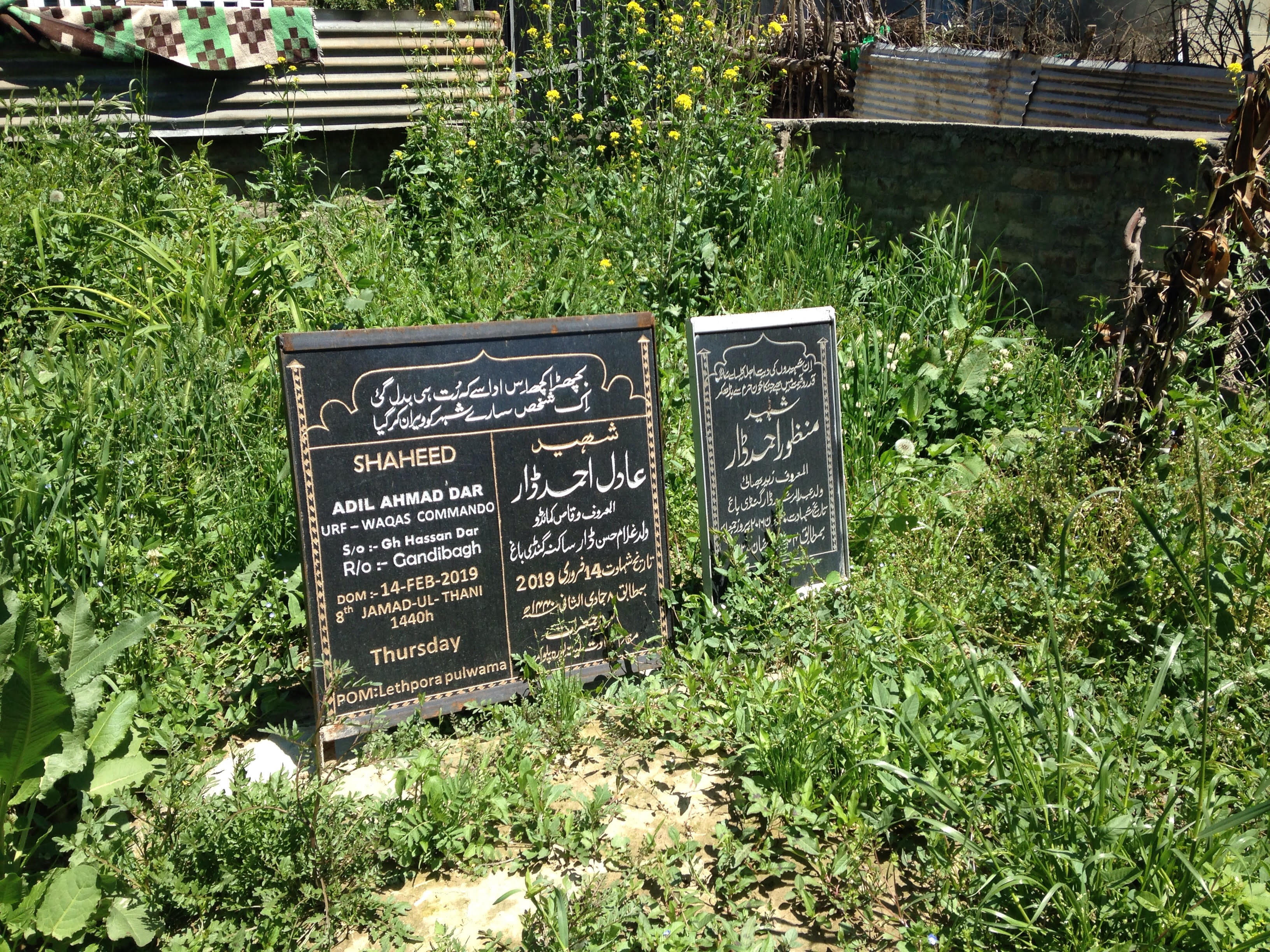 Adil’s tombstone in the village graveyard reads: “Adil Ahmed Dar urf Waqas Commando. DOM (Date of martyrdom) 14 February 2019, POM (Place of martyrdom) Lethpora”.