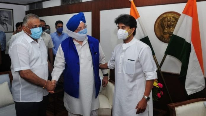 V K Singh and former Civil Aviation Minister Hardeep Singh Puri were present when Scindia took charge of the ministry.