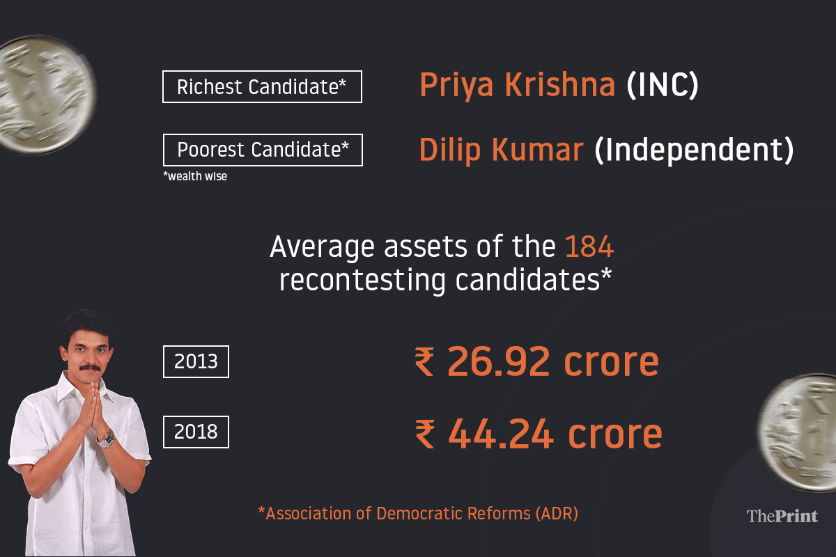 Congress’s Priya Krishna is the richest candidate with net assets of Rs 1,024 crore while independent Dilip Kumar is the poorest with assets worth just Rs 1,000.