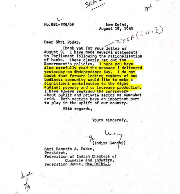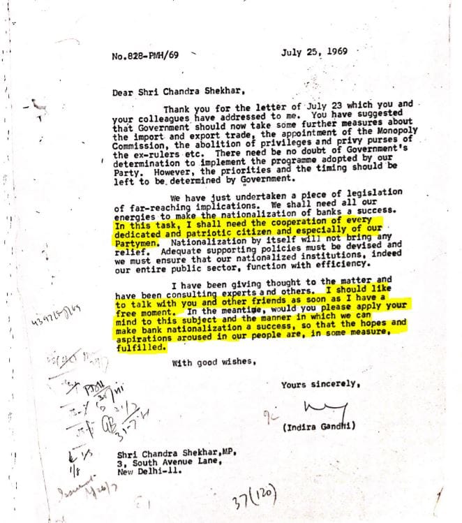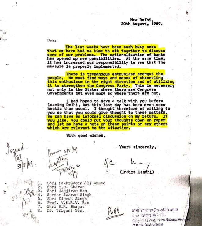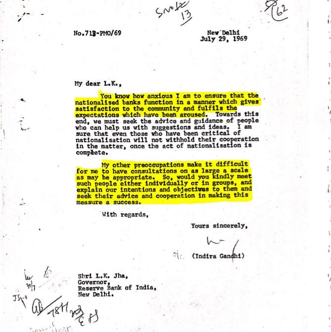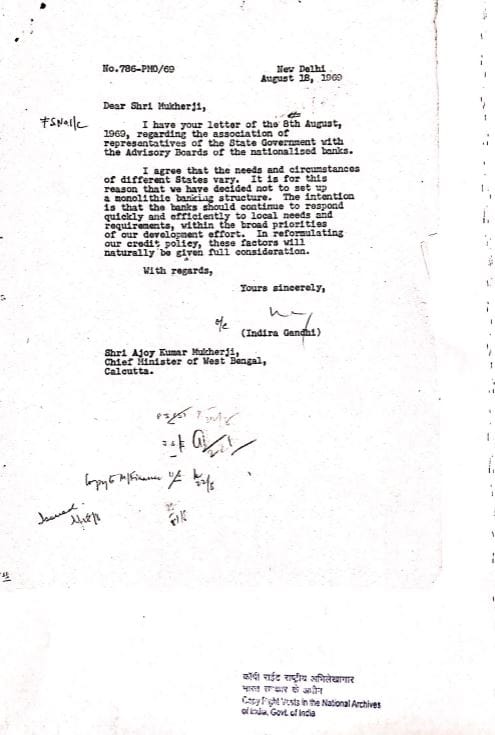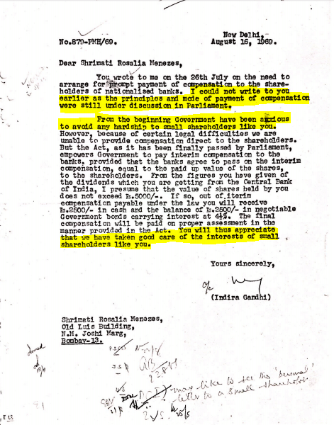 The intent of bank nationalisation was for it to benefit the masses, and Indira Gandhi did actually correspond with concerned citizens who wrote to her asking about how the policy would affect them. This is a rare and unseen side of her, given she was later perceived to be taking decisions without considering what the masses thought. In these letters she comes across as a prime minister taking the time to assuage the fears of citizens in 1969.