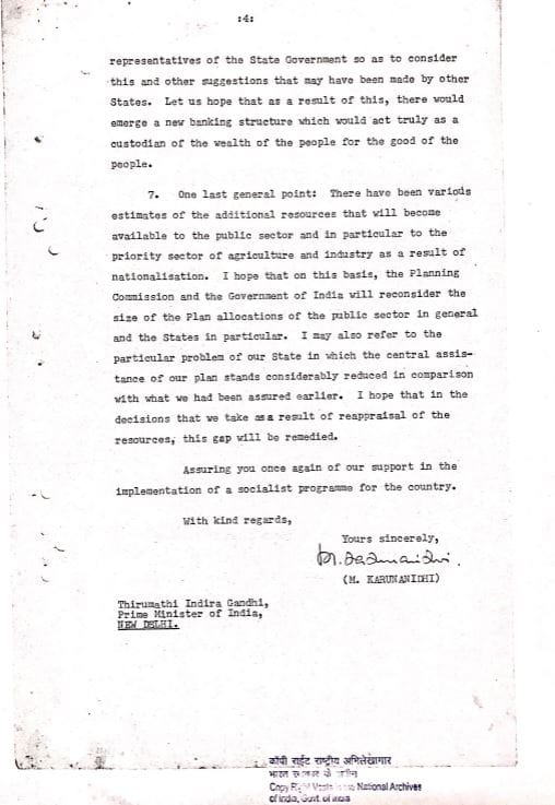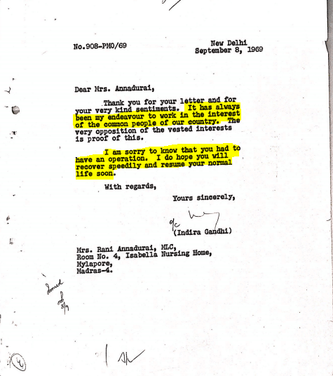 She also writes back to a Mrs. Annadurai, an MLC who is ailing but seems to have had good things to say about the nationalising of banks.