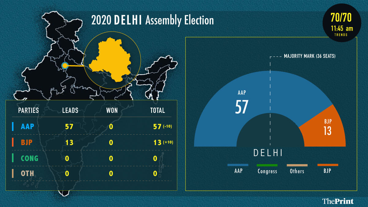 10:25am: Trends have come in for all but one seat in Delhi — Mehrauli.