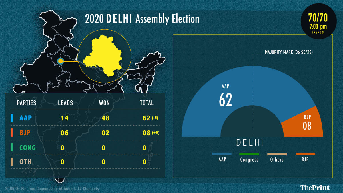 According to Election Commission data, the AAP won in 62 assembly seats while the BJP pocketed the remaining eight constituencies in the 70-seat Delhi assembly.