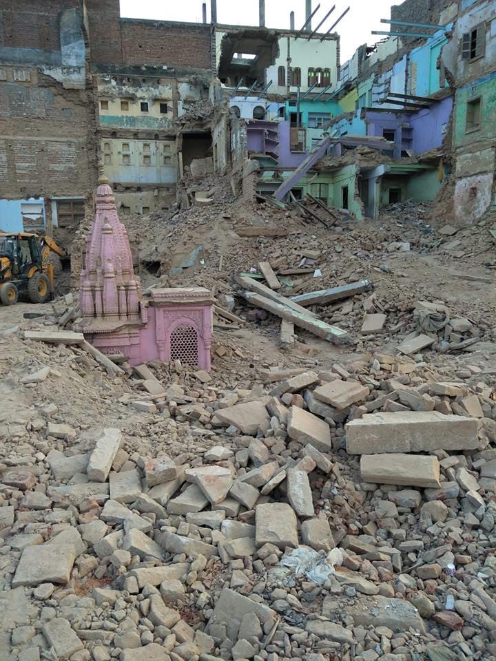 Retired Varanasi-based journalist Suresh Pratap Singh, standing in the midst of demolished buildings and piles of rubble in the Pucca Mahal locality, the “nucleus” of Varanasi, explained just how.