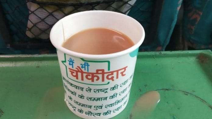 “I had boarded the train from Ghaziabad on Friday morning when I was offered the first tea in this cup. I ignored but then after an hour, breakfast was served along with tea in the same cups. I got up to see and realised all passengers were served tea in those ‘chowkidar’ cups,” Mohanty told ThePrint.