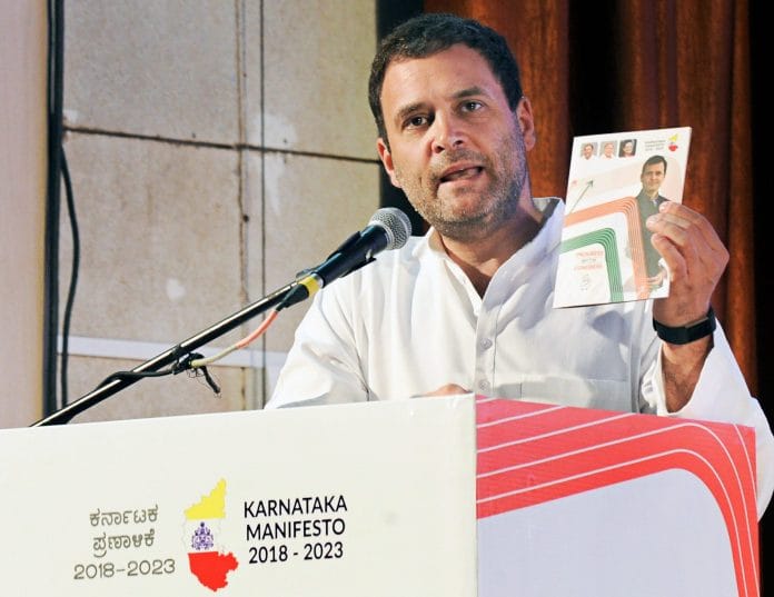 Bengaluru: Vowing to listen to the ‘mann ki baat’ of the people of Karnataka, Congress president Rahul Gandhi Friday released the election manifesto of his party which is big on promises – from creation of 15-20 lakh jobs annually for the next five years to promoting Kannada language and culture.