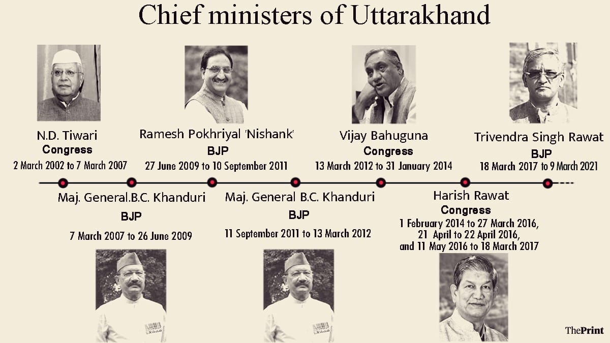 The first elected BJP CM of Uttarakhand was B.C. Khanduri, who took charge on 7 March 2007, but could only continue till 26 June 2009. When Khanduri resigned taking moral responsibility for the BJP’s poor performance in the 2009 Lok Sabha elections in the state, Ramesh Pokhriyal ‘Nishank’ — now the Union Education Minister — took over.