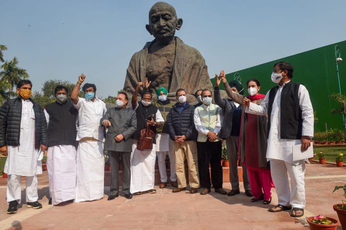 Over 20 opposition parties boycotted the president’s address to the joint sitting of Parliament in support of the demand of the protesting farmers for the repeal of the three farm laws.