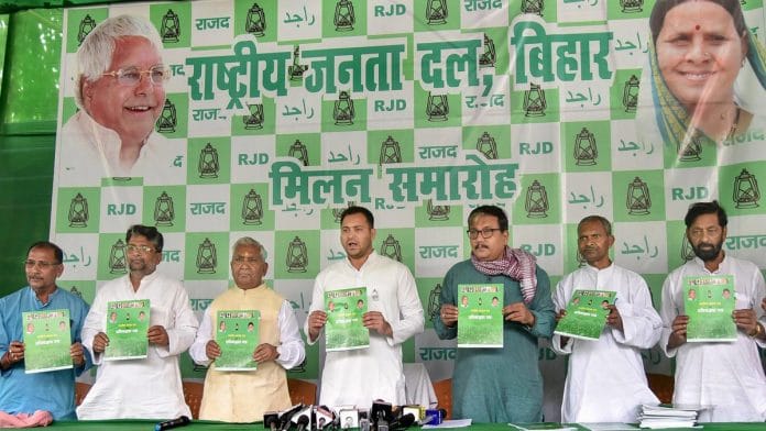 Releasing the manifesto, Tejashwi Prasad Yadav, also the leader of the opposition in the state, said that “it is not the manifesto of RJD, rather it is a ‘pratibadhta patra’ (commitment document) of the party”.