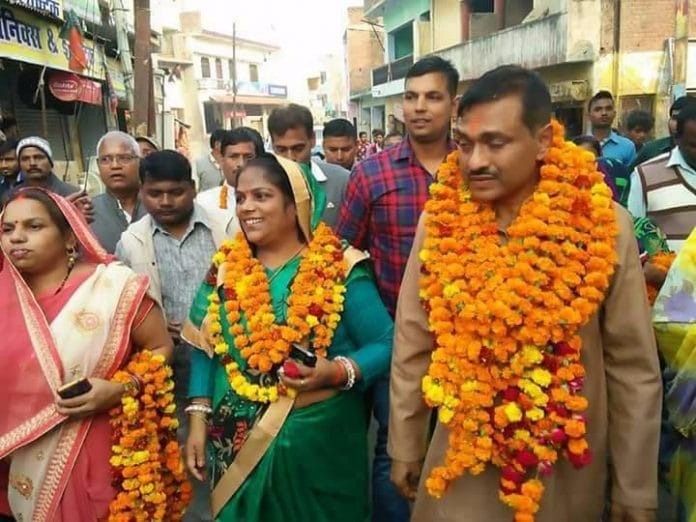 Rajesh Masalewala’s wife Chandrama Devi registered her third consecutive victory, retaining her post as head of the Amethi nagar panchayat in Amethi.
