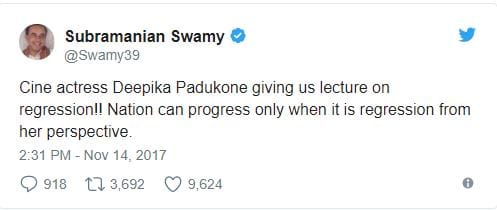 November 16: Speaking to ANI, Mahipal Singh Makrana, a member of the Rajput Karni Sena says, “We never raise a hand on women but if need be, we will do to Deepika what Lakshman did to Shurpanakha for violating the rules and culture of India.” He refers to the chopping of Ravana’s sister’s nose in Ramayana.