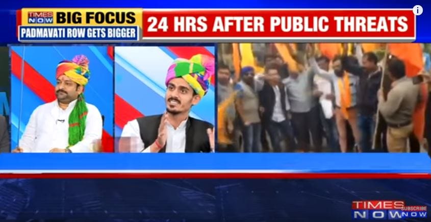 A fringe group blocks entry to the Chittorgarh Fort. A spokesperson of the Karni Sena pulls out a sword and brandishes it on live television during a debate on the film.