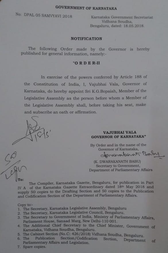 3.54 pm: K.G. Bopaiah has been appointed as pro-tem speaker