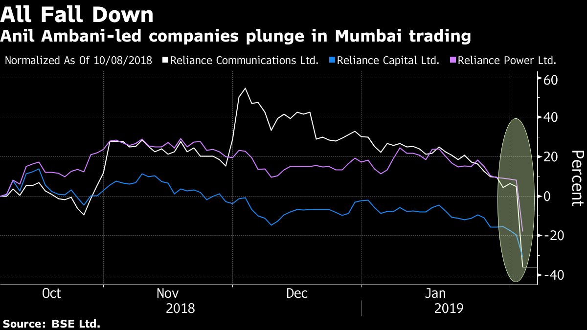 The downfall signals another inflection point in the dueling fortunes of two brothers in India’s richest family. It’s also convenient for the elder brother, who is now Asia’s richest person thanks in part to gains in the value of his flagship’s shares, buoyed by the success of the wireless carrier he founded only two years ago.