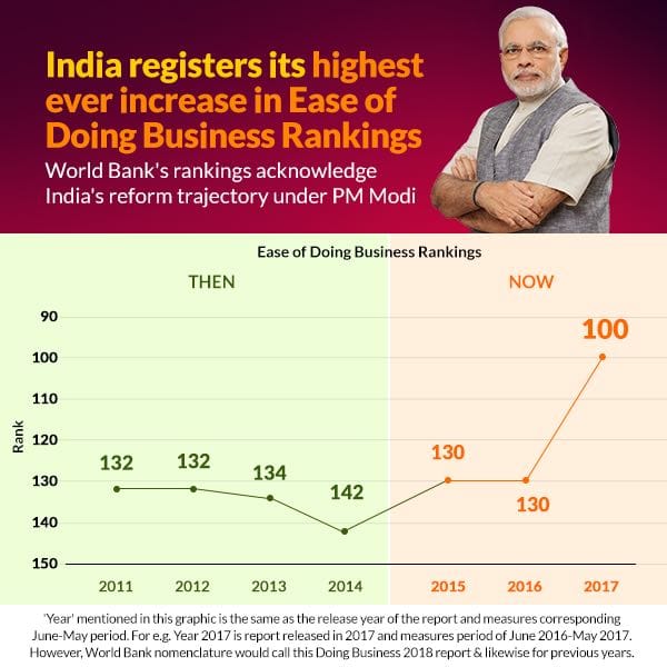 Historic jump in ‘Ease of Doing Business’ rankings is the outcome of the all-round & multi-sectoral reform push of Team India. pic.twitter.com/DhrEcuurgi