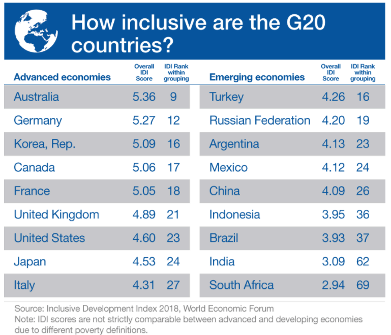 India is the second least inclusive country among the G20 countries, 36 positions lower than China, according to a World Economic Forum (WEF) report released Monday.