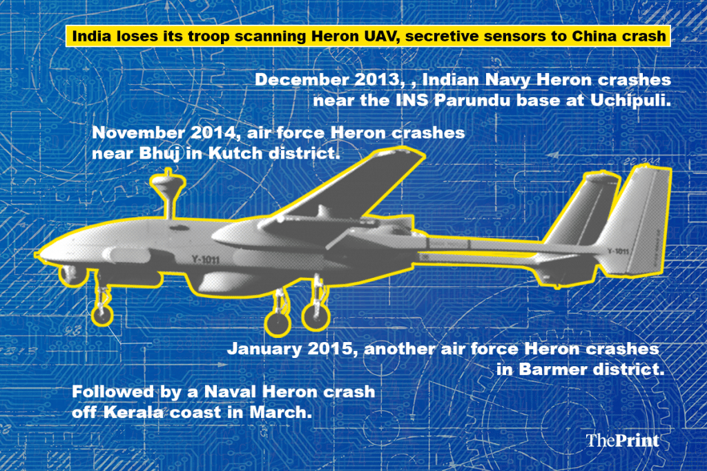 The unusual crash rate started in December 2013, with an Indian Navy Heron crashing near the INS Parundu base at Uchipuli. In November 2014, an Air Force Heron crashed near Bhuj in Kutch district. In January 2015, another air force Heron crashed in Barmer district, followed by a Naval Heron crash off Kerala coast in March.