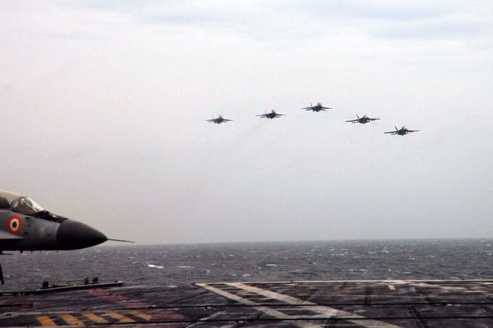 “INS Vikramaditya, India’s aircraft carrier participating in the exercise launched MiG 29-K fighter aircraft to undertake combat missions against the US Navy F-18 fighter aircraft launched from USS Nimitz, the USN aircraft carrier, for combined crew training. In addition to the combat operations, the fighter aircraft from both navies undertook composite formation flying, thereby demonstrating another step in the interoperability aimed through this exercise,” the Navy Spokesperson said.
