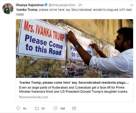 India’s Hyderabad rolls out the red carpet for Ivanka Trump, who will be speaking at #GES2017 later today. pic.twitter.com/HhqRXVjvhp