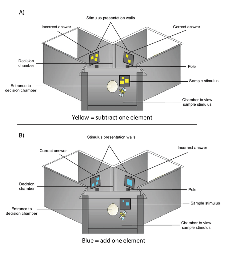 Thus, our “bee school” within the Y-maze allowed the bees to learn how to use arithmetic operators to add or subtract.