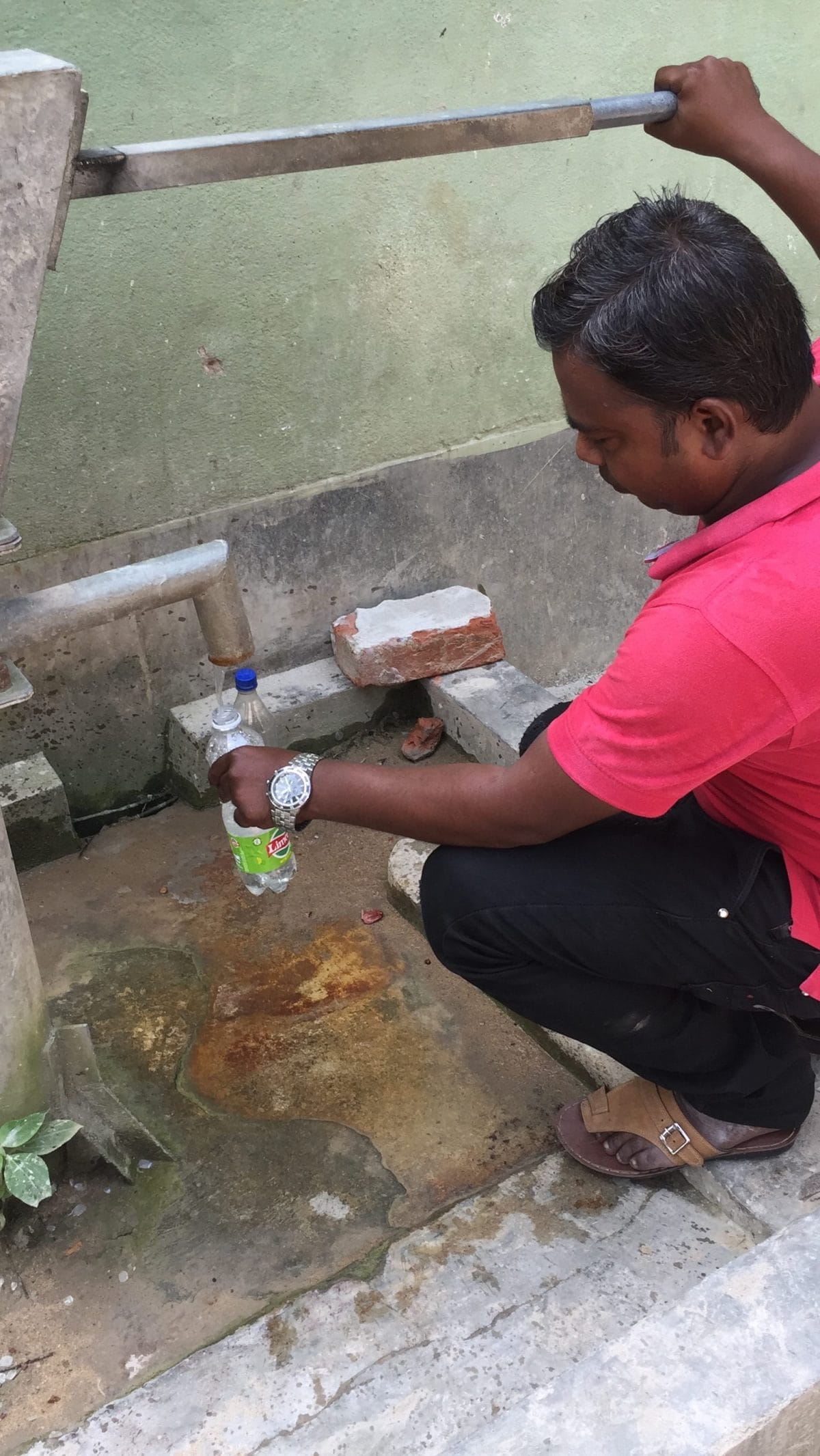 Kumarhat (Komarhat), South 24 Parganas: Water from Baruipur’s hand-pumps is so dirty it tends to leave paan-coloured stains. Some residents gag the mouth of the pumps with cloth to “purify” the water, others filter it at home; many turn to bottled water.