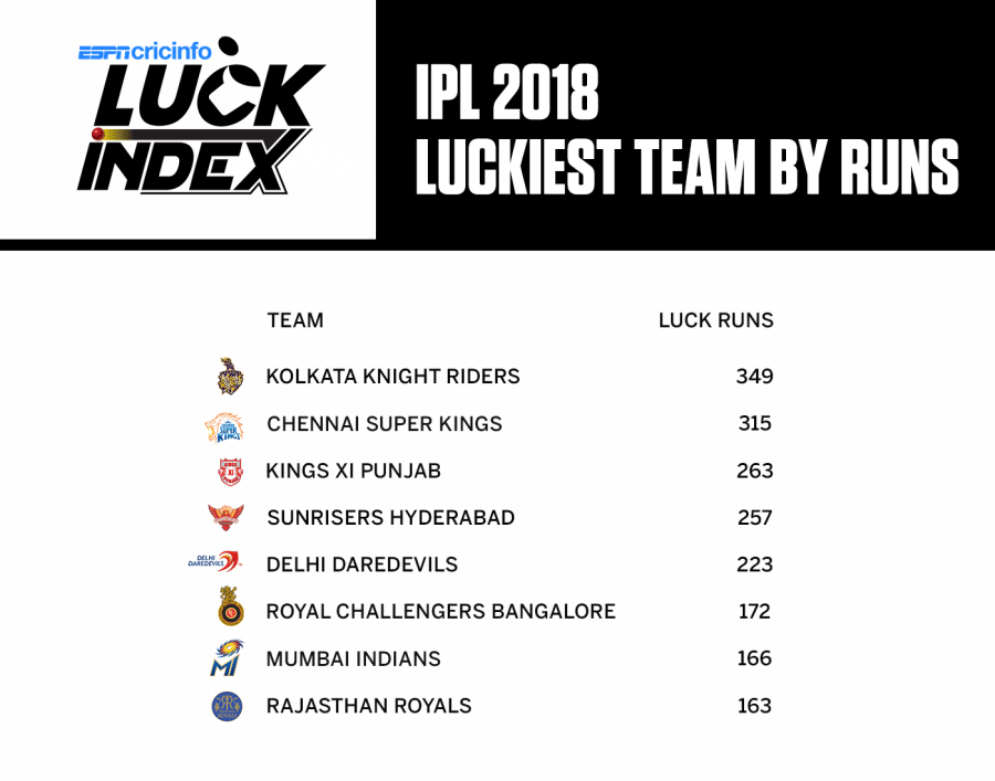 When run on IPL 2018 data, the algorithm threw up Kolkata Knight Riders as the luckiest team with 349 ‘Luck Runs’. Shane Watson was the luckiest batsman while Aaron Finch was the unluckiest. Rashid Khan was the unluckiest bowler.