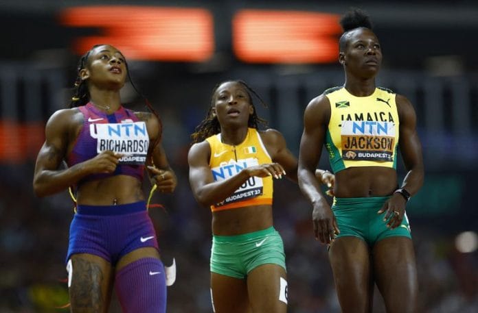 BUDAPEST (Reuters) – Jamaica’s Shericka Jackson claimed a psychological advantage over American Sha’Carri Richardson by leading her rival home on Thursday as both big guns and season leader Gabby Thomas qualified for the women’s world 200 metres final.