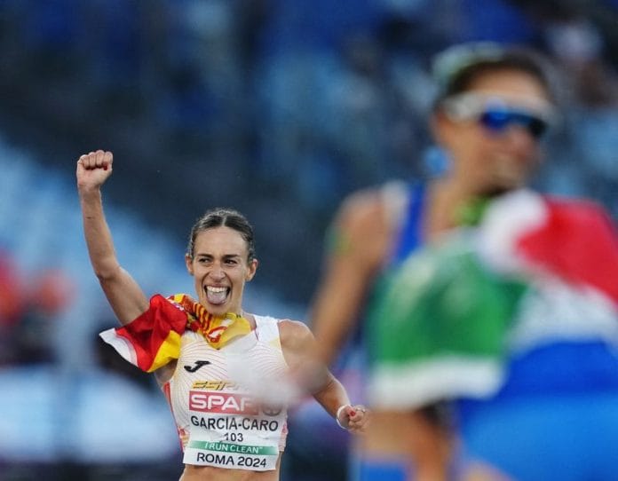 Garcia-Caro, in third place going into the final straight in Rome’s Stadio Olimpico, began to celebrate what she thought was a bronze medal as she approached the finish line.