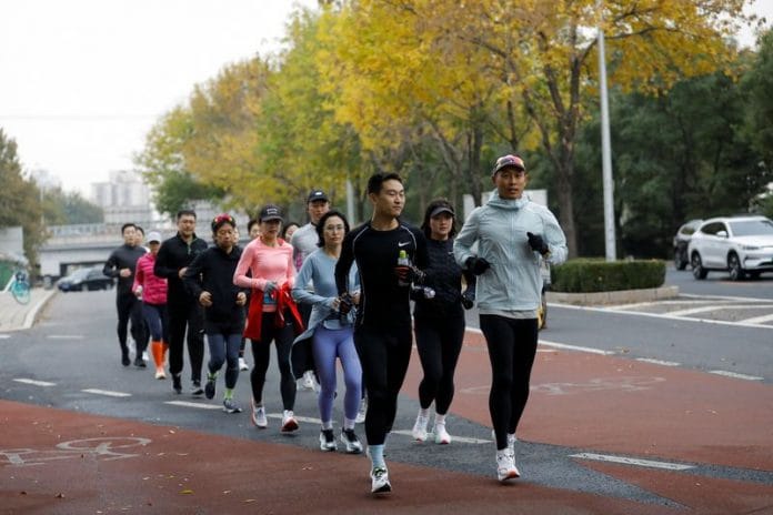 BEIJING (Reuters) – In just his running gear, cap and wind-resistant glasses, Beijinger Oscar Wu braced the morning chill to meet up with other members of his running club for training ahead of a landmark marathon in the Chinese capital.