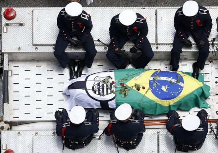 One of Tuesday’s most moving moments came when the firetruck bearing his coffin halted outside the home of Pele’s 100-year-old mother. Crowds there applauded and chanted “Pele is our king,” before holding a minute’s silence.