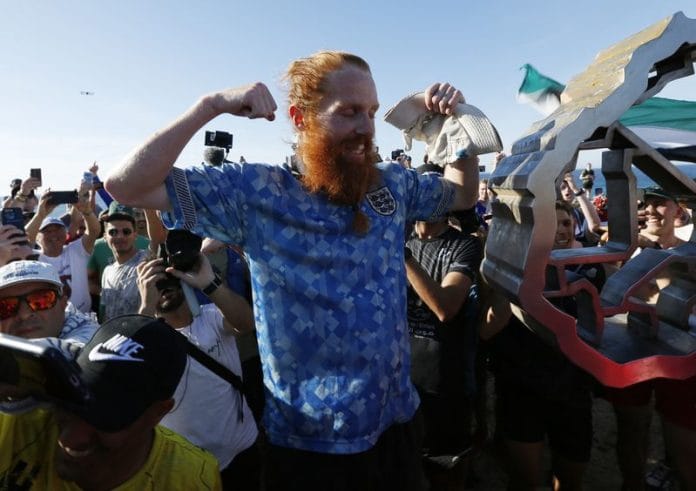 Cook, wearing an England football jersey, arrived at the finish to chants of “Geezer, geezer”, telling reporters: “I’m pretty tired”, before enjoying a well-earned strawberry daiquiri.