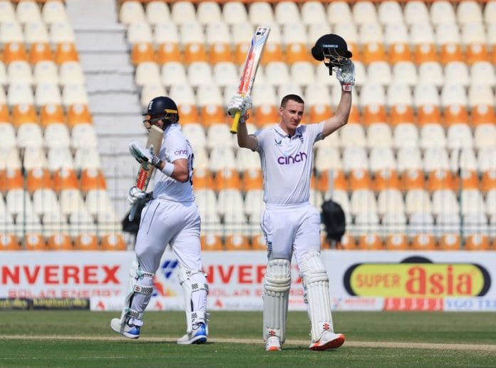 MULTAN, Pakistan (Reuters) -England notched up their highest total in 86 years thanks to Harry Brook’s triple century and Joe Root’s double ton, declaring on 823-7 before striking with the first ball to leave Pakistan on the ropes at tea on the fourth day of the test on Thursday.